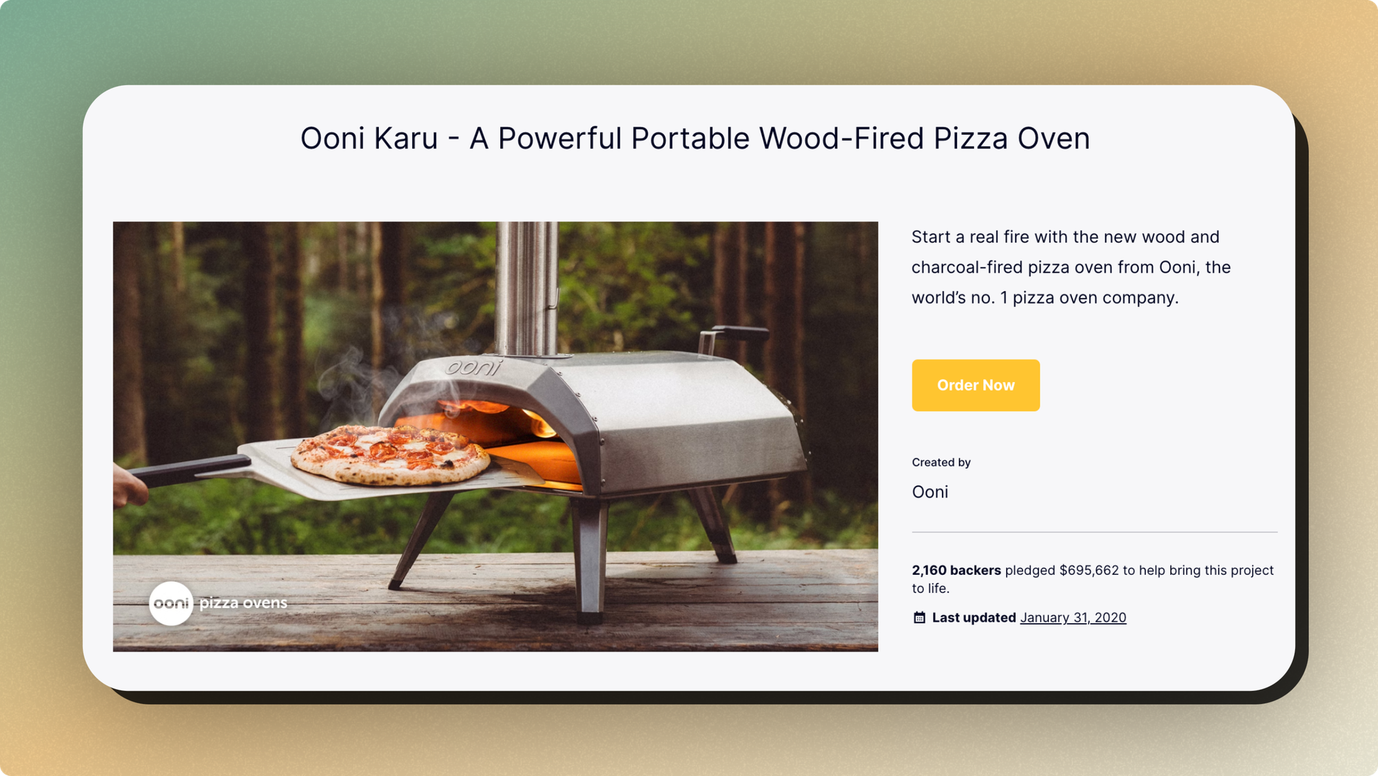 Launched in August of 2019, The Ooni Pizza Oven crowdfunding campaign,