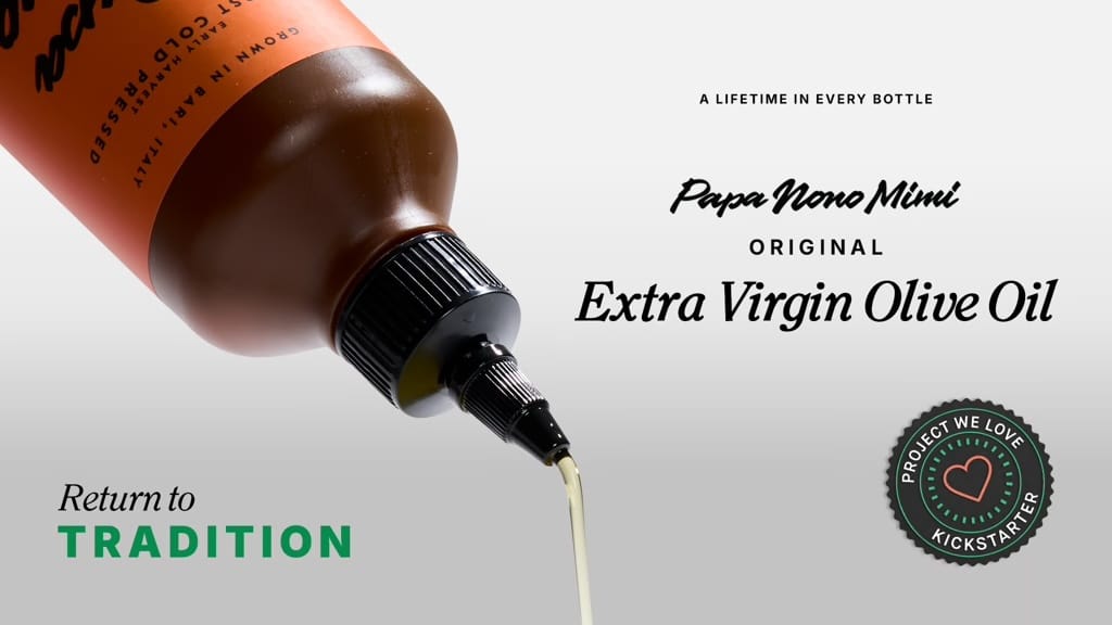 Papa Nono Mimi olive oil, their collaborative food-related venture has gotten off to a great start with a Kickstarter project thats just about surpassed it's goal six times over with a week to go in its campaign.