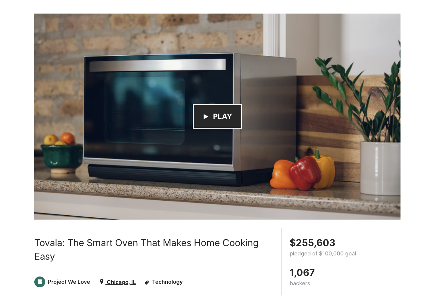 Tovala turned to Kickstarter in 2016 to launch their smart oven. The platform offered more than just funding—it provided an opportunity to connect with early adopters and generate awareness they couldn’t achieve on their own.