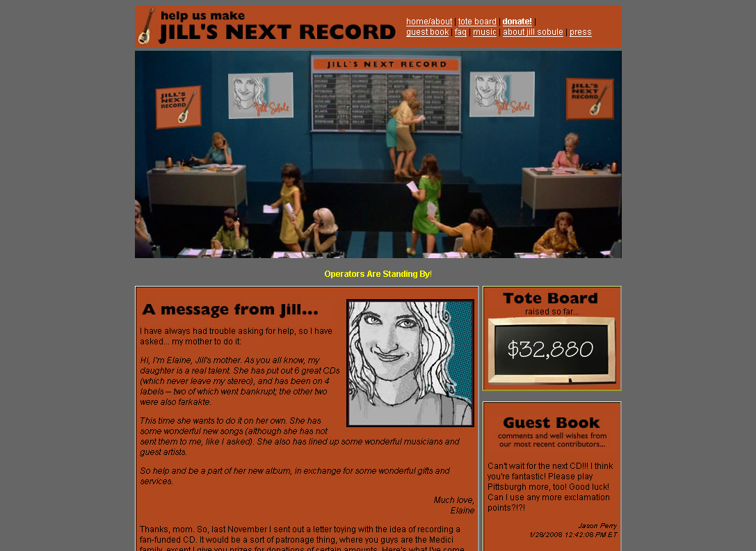 Years earlier, Sobule had pioneered her own version of fan-powered funding. For an album release, she invited supporters to directly fund the recording, building a DIY system that looked similar to what Kickstarter was envisioning. When Kickstarter was still just Kickstartr (no “e”), founder Perry Chen and co-founder Yancey Strickler were following her work.