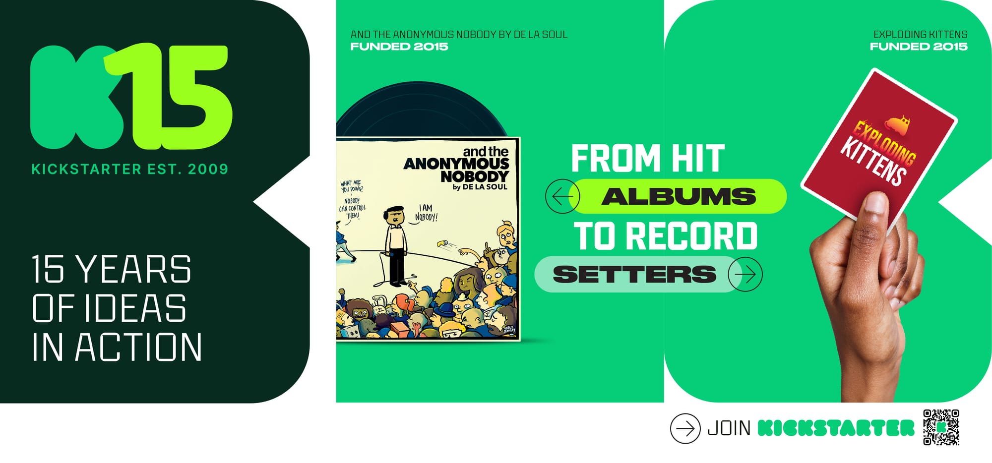 In honor of 15 years of Kickstarter – a milestone that we reached in April and are celebrating throughout the year – we’re launching "Ideas in Action," a multi-channel marketing campaign that spans both out-of-home (OOH) and digital platforms.