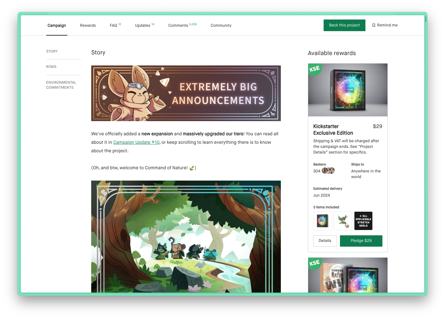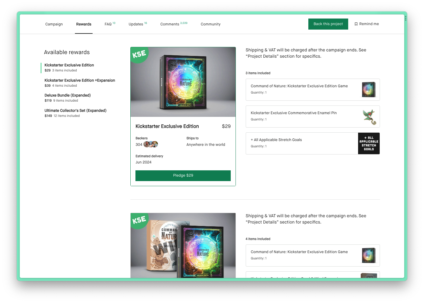 Check out a great example of the Rewards tab and cards in use from creator Ramy Badie, with their project Command of Nature: