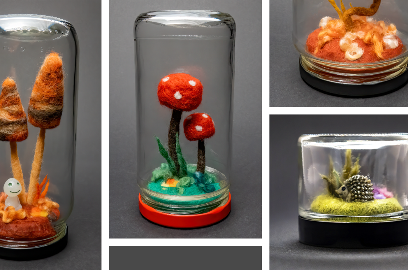 Things have changed for Jennifer Harris in the last year: A new house in a new town and a new job. The one thing that has yet to change is her love of needle felting. For Make 100, Harris will use jars destined for garbage or recycling bins to create felted terrariums of various sizes. She will handcraft each world; no two will be alike. Backers will have the opportunity to select standard shrooms or fantasy fungi for their terrariums. Additional sizes will be available as add-ons.