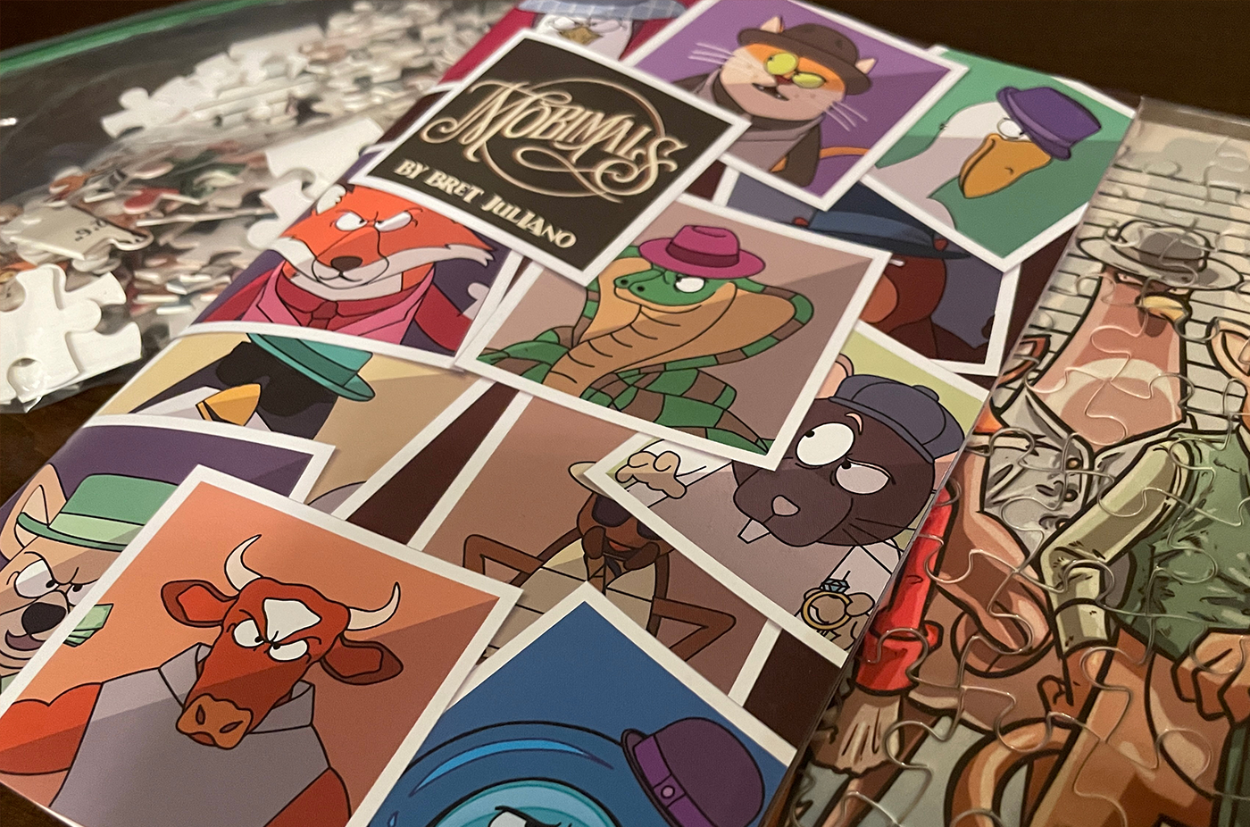 Cartoonist and creator Bret Juliano returns to Kickstarter to fund the first volume of his Mobimals pin-up booklet, a gallery collection featuring 36 pages on 34 real-life mobsters reimagined as their animal-nickname counterparts. Each page of the booklet tells the story of a different mobster. The booklet is already complete, so funds will cover printing costs and the production of the stuffed animals Juliano has offered as rewards. Other rewards include pins, mugs, puzzles, art prints, and trading cards.