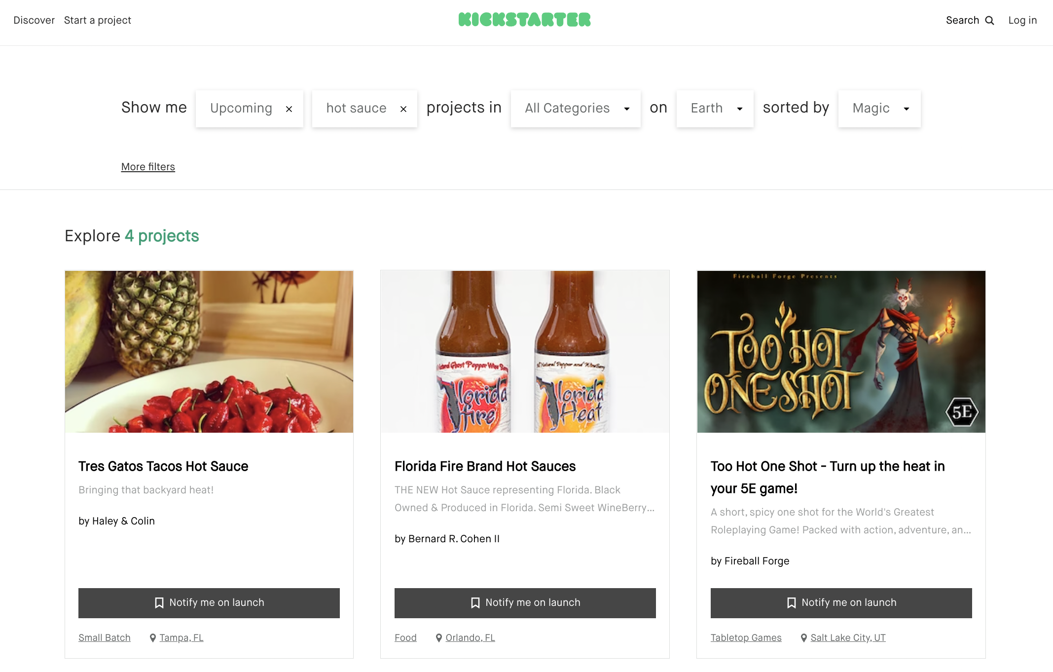 Now, when backers use our search functionality to find projects they want to support, pre-launch pages will show up among the results. Potential backers will be able to more easily browse upcoming projects and choose to be notified when they launch.